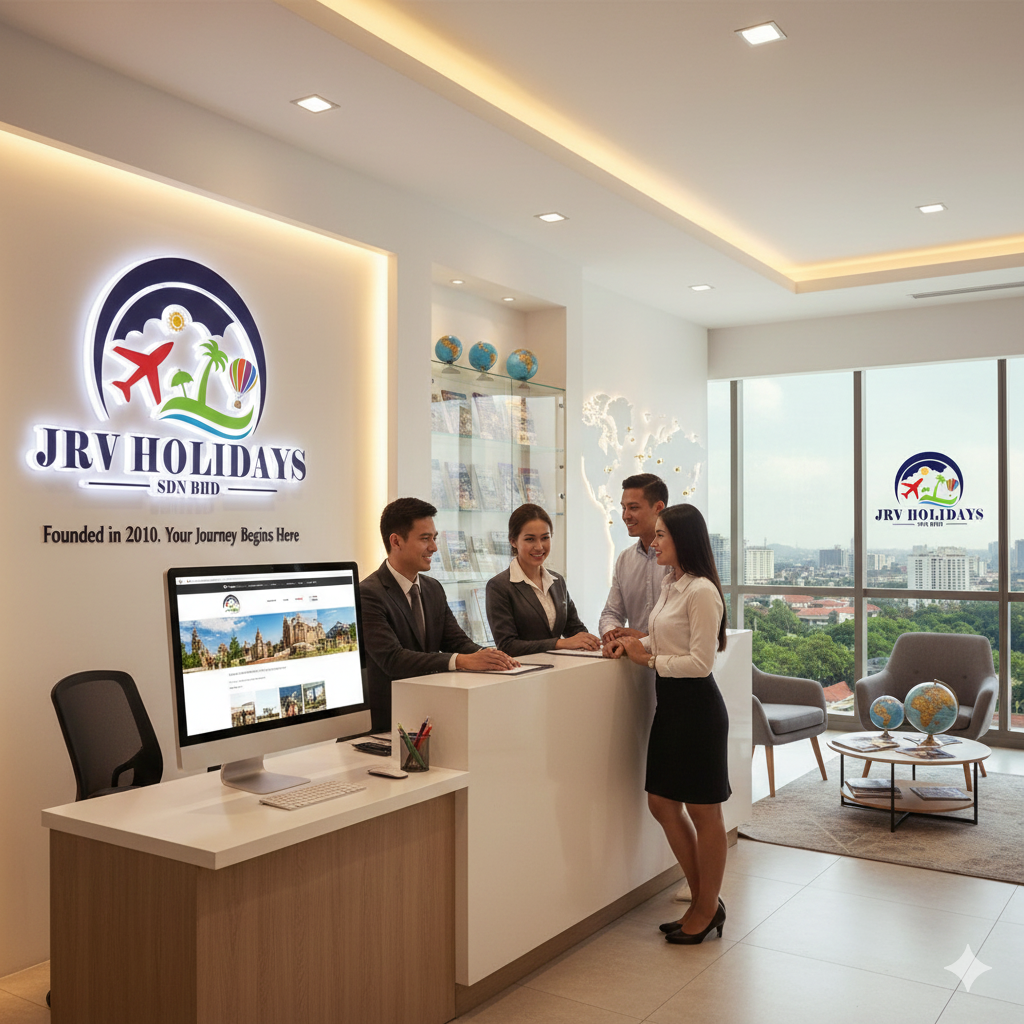 Founded in 2010 by Mrs. Vicky Nathan in Klang, Selangor, JRV Holidays Sdn. Bhd. is a trusted and well-established travel agency dedicated to making travel dreams come true. What began as a small, passionate travel company has today grown into a reputable brand known for its personalized services, professionalism, and commitment to excellence.